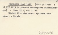LEMERCIER Abel 1876 [List po franc. z 17 XII 1875 do prezesa Towarzystwa Tatrzańskiego].