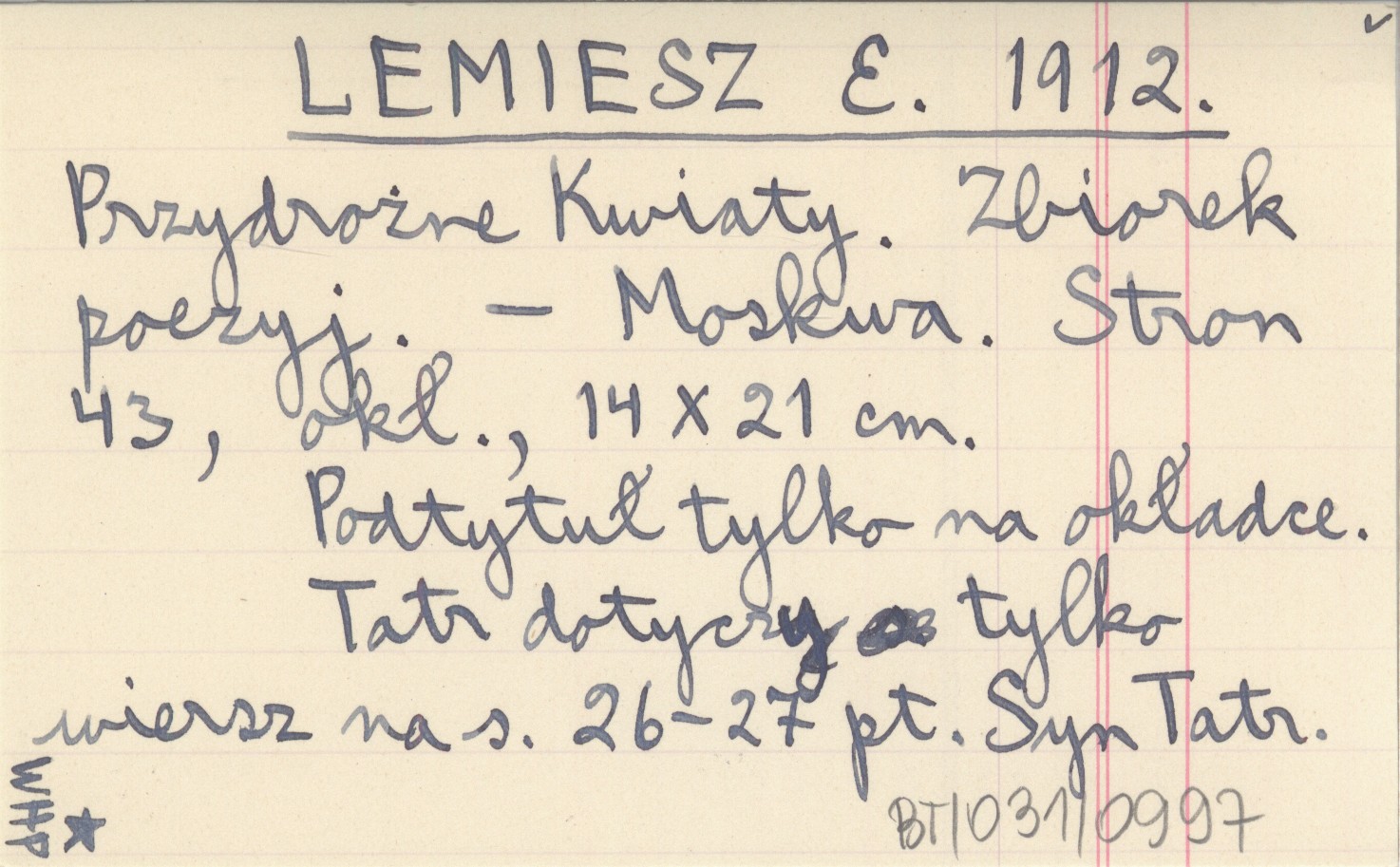 Moskwa , 43 s., okł., 14x21 cm. Tatr dotyczy tylko wiersz na s. 26-27 pt. Syn Tatr. Podtytuł tylko na okładce.