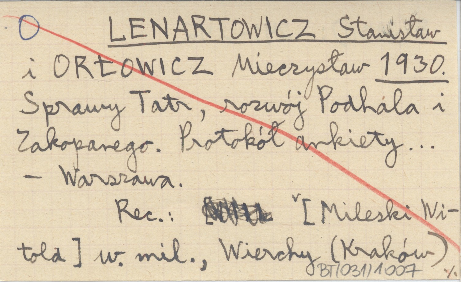 LENARTOWICZ Stanisław ORŁOWICZ, Mieczysław. ; 1930 Sprawy Tatr, rozwój Podhala i Zakopanego. Protokół ankiety...