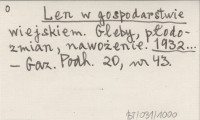 Len w gospodarstwie wiejskiem. Gleby, płodozmian, nawożenie. 1932...