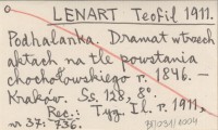 LENART Teofil 1911 Podhalanka. Dramat w trzech aktach na tle powstania chochołowskiego r. 1846.