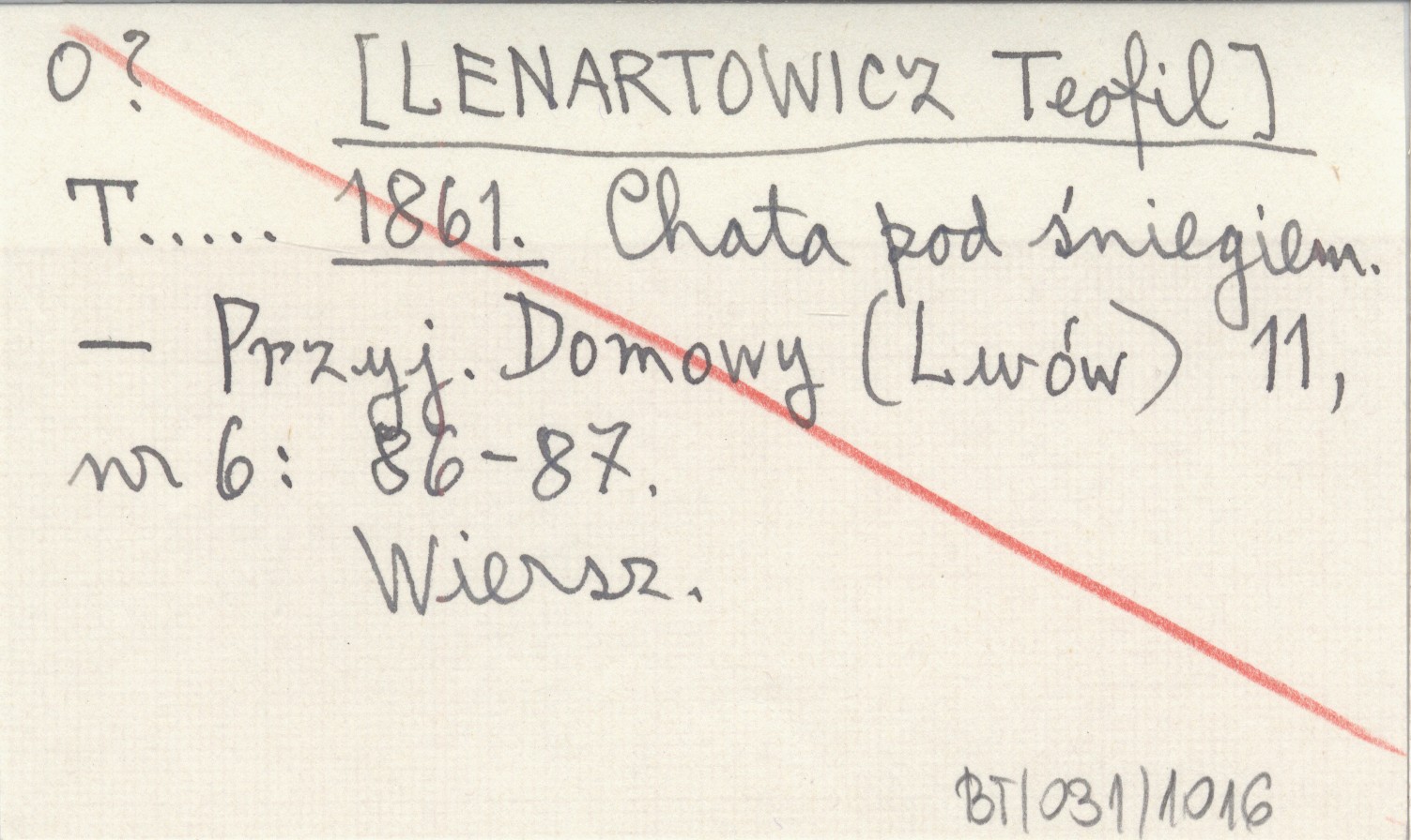T..... [LENARTOWICZ Teofil] 1861 Chata pod śniegiem.