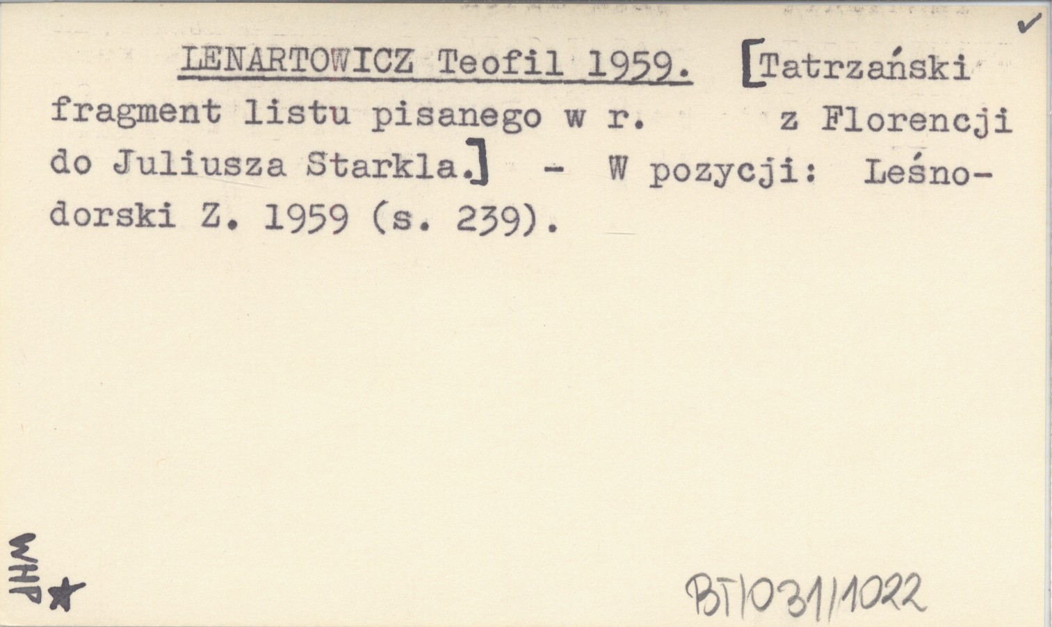 LENARTOWICZ Teofil 1959 [Tatrzański fragment listu pisanego w r. z Florencji do Juliusza Starkla].