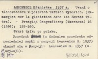 LENCEWICZ Stanisław 1937 a Uwagi o zlodowaceniu w polskich Tatrach Wysokich. (Remarques sur la glaciation dans les Hautes Tatra).