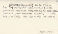 St. L. [LENCEWICZ Stanisław] 1938 a [Rec. o:] Mieczysław Klimaszewski: Die Südgrenze der maximalen Vereisung in Westkarpaten. Ztschr. f. Gletscherkunde 25 (1937).