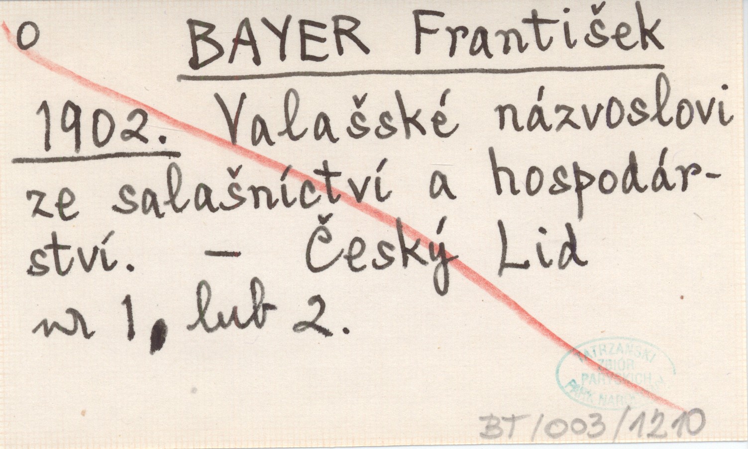 BAYER František 1902 Valašské názvoslovi ze salašníctví a hospodárství.