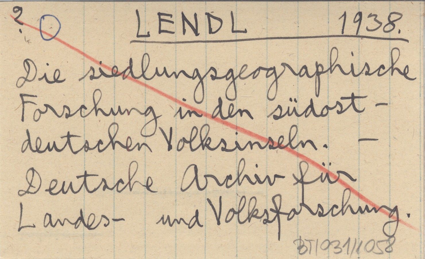 LENDL 1938 Die siedlungsgeographische Forschung in den südostdeutschen Volksinseln.