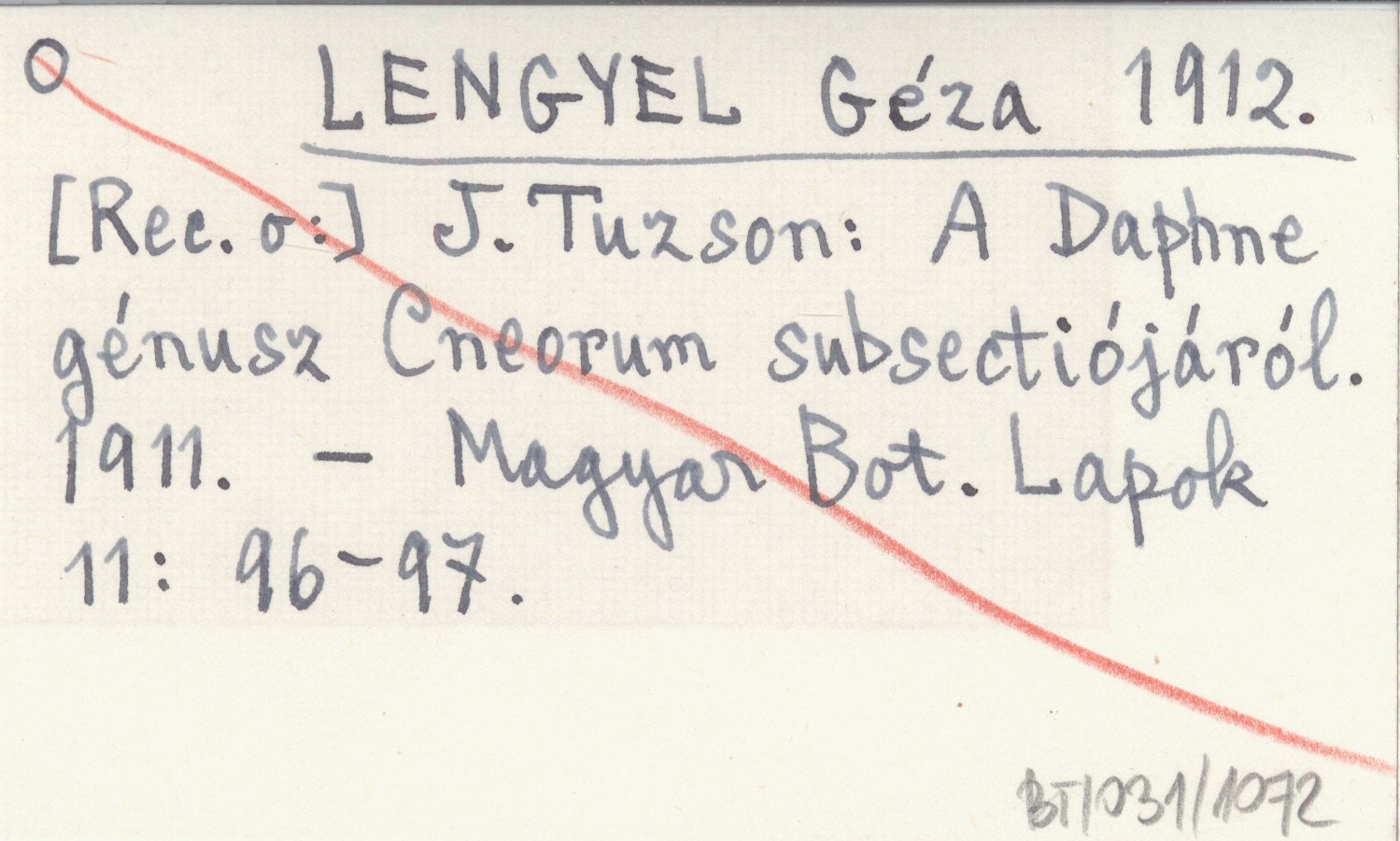 LENGYEL Géza 1912 [Rec. o:] J. Tuzson: A Daphne génusz Cneorum subsectiójáról. 1911.