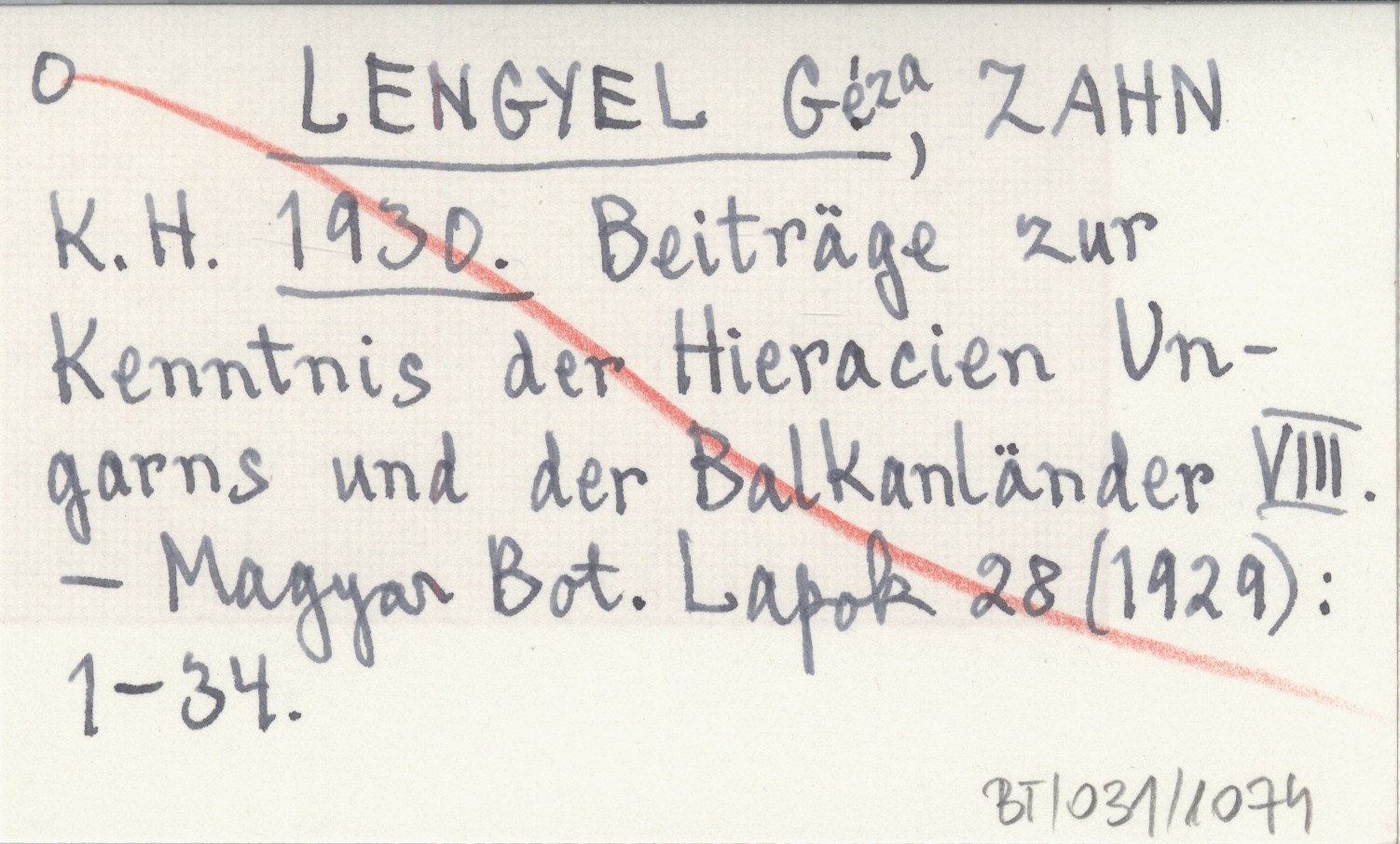 LENGYEL Géza ZAHN, K. H. ; 1930 Beiträge zur Kenntnis der Hieracien Ungarns und der Balkanländer VIII.