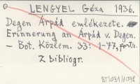 LENGYEL Géza 1936 Degen Árpád emlékezete. Erinnerung an Árpád v. Degen.