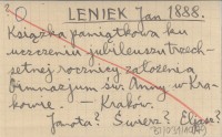 LENIEK Jan 1888 Książka pamiątkowa ku uczczeniu jubileuszu trzechsetnej rocznicy założenia Gimnazjum św. Anny w Krakowie.