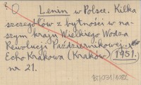 Lenin w Polsce. Kilka szczegółów z bytności w naszym kraju Wielkiego Wodza Rewolucji Październikowej. 1951