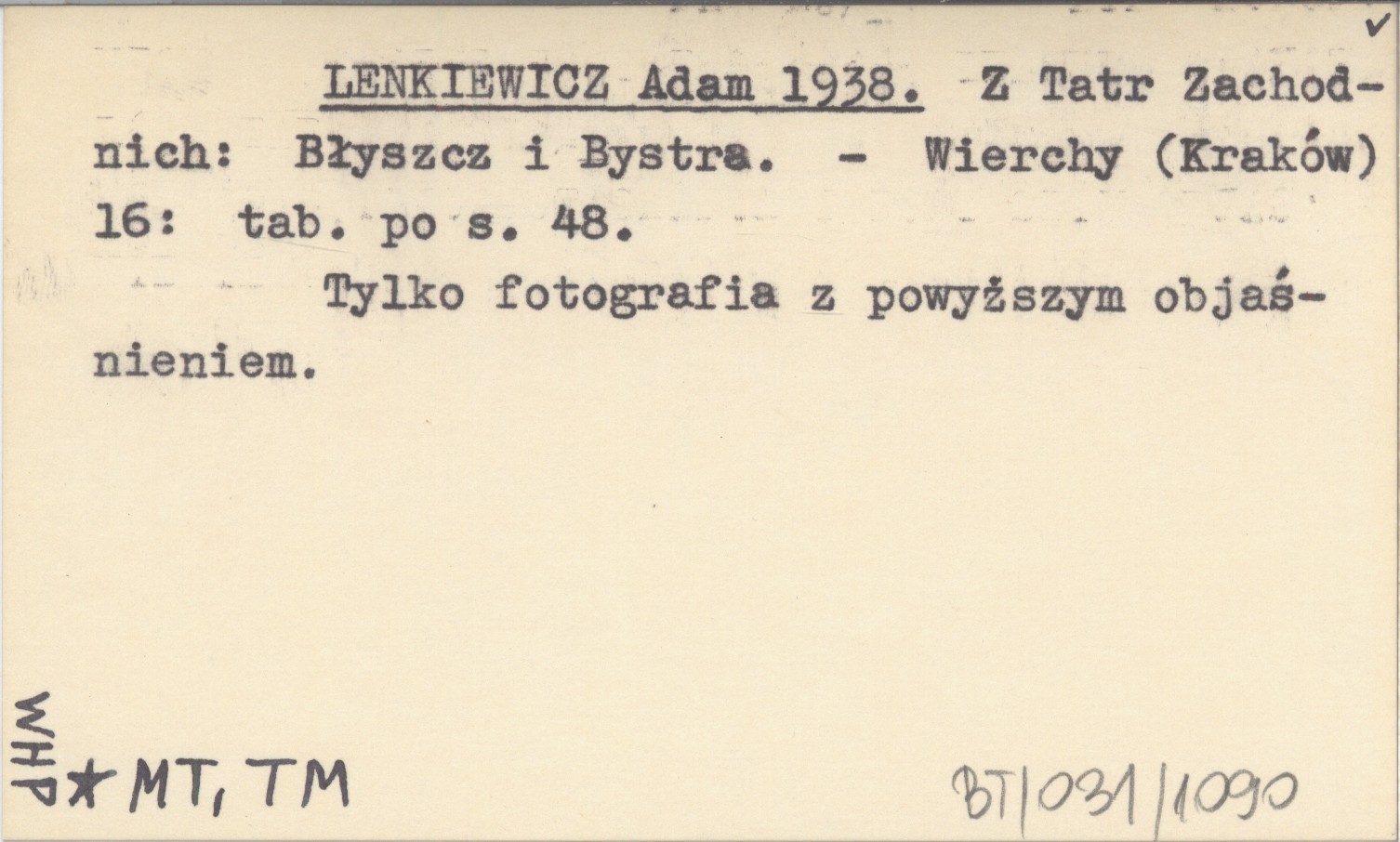 Wierchy (Kraków) , 16: k. po s. 48. Tylko fotografia z powyższym objaśnieniem.