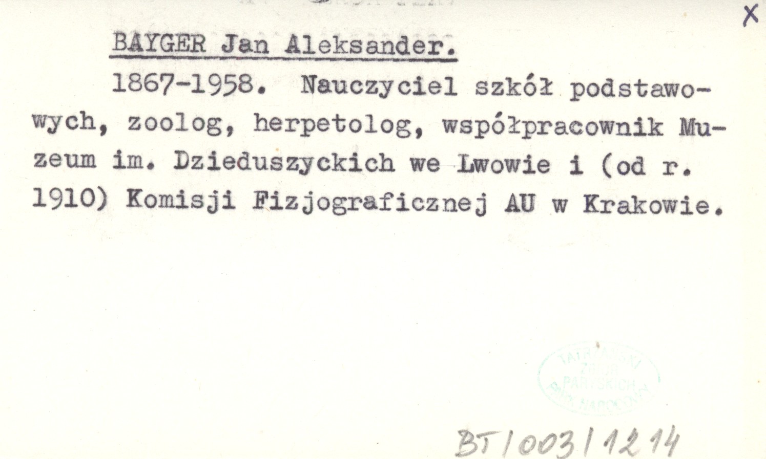 1867-1958. Nauczyciel szkół podstawowych, zoolog, herpetolog, współpracownik Muzeum im. Dzieduszyckich we Lwowie i (od r. 1910) Komisji Fizjograficznej AU w Krakowie.