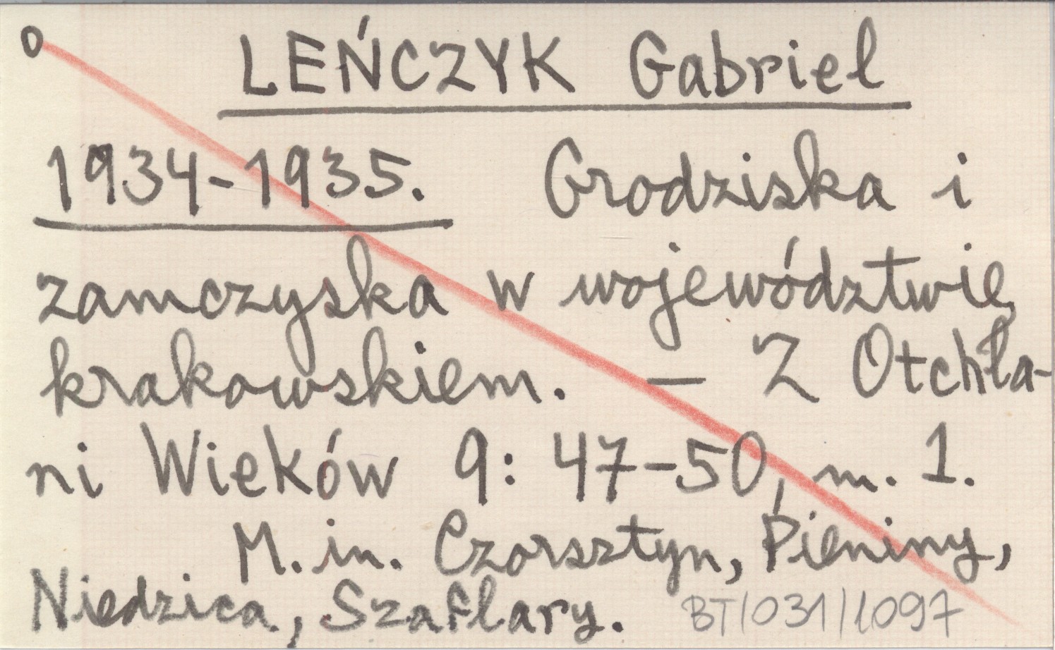 LEŃCZYK Gabriel 1934-1935 Grodziska i zamczyska w województwie krakowskiem.