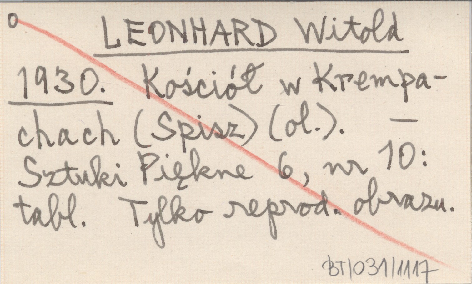 LEONHARD Witold 1930 Kościół w Krempachach (Spisz) (ol.).