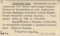 LEOPOLDUS 1696 Prudentibus ac Circumspectis N.N. Iudici caeterisque Iuratis Civibus et Senatoribus ac toti communitati Liberae Regiaeque Civitatis nostrae Kesmarkiensi Fidelibus nostris dilectis.