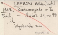 LEPECKI Bohdan Teofil 1934 Robinsonjada w Tatrach.