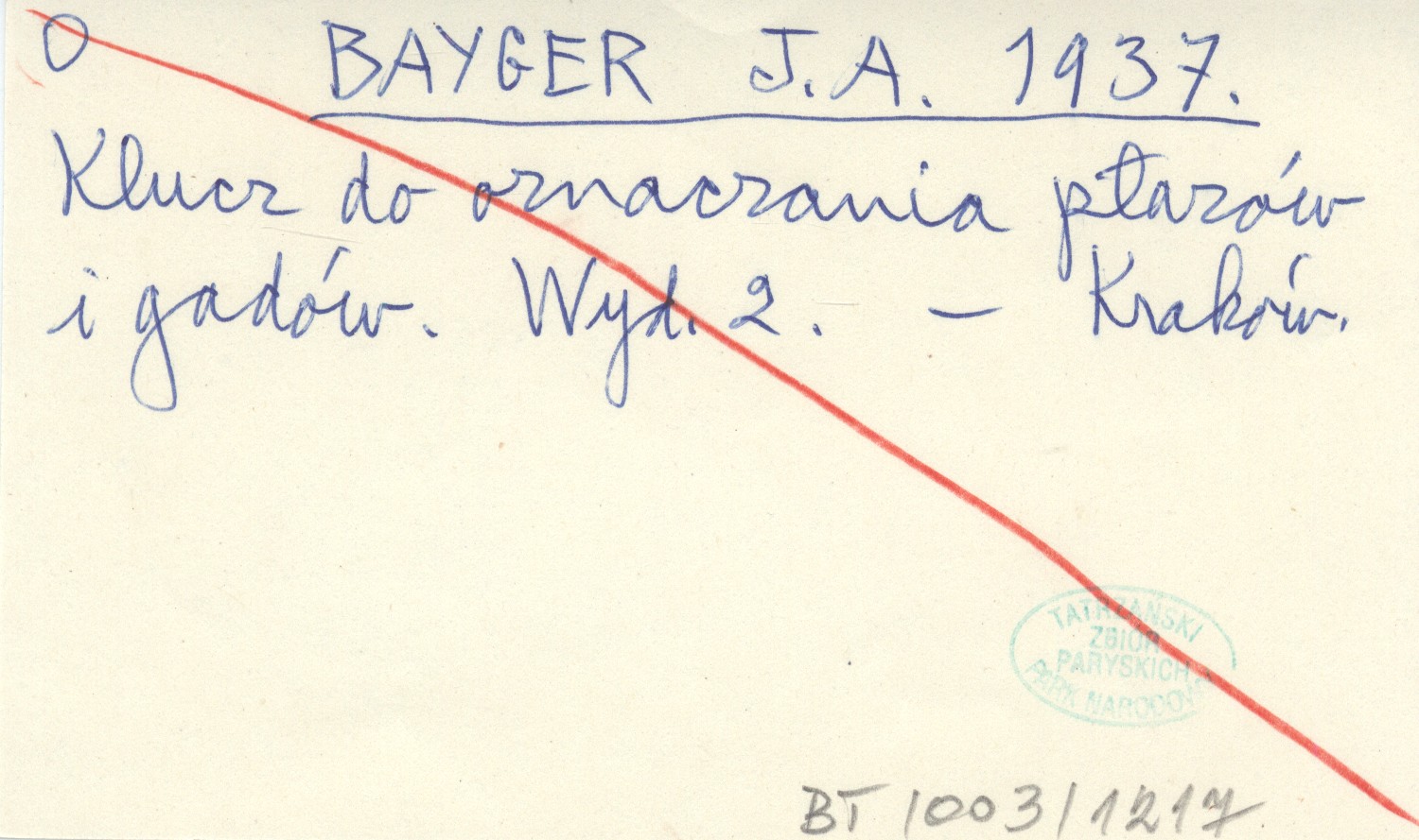 BAYGER J. A. 1937 Klucz do oznaczania płazów i gadów.