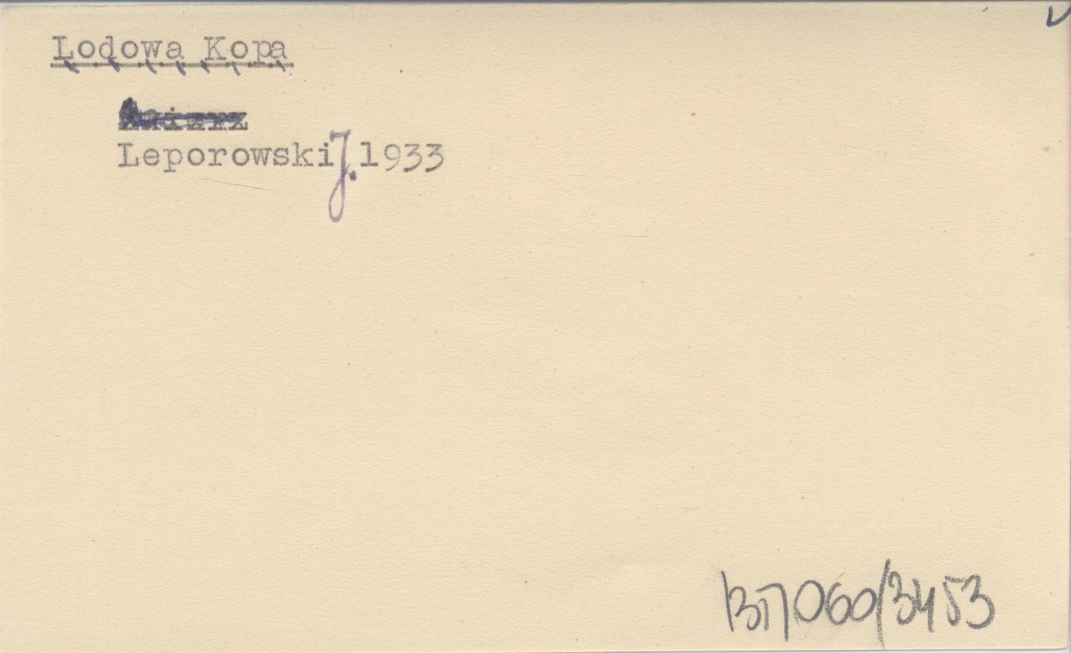 LEPOROWSKI Jerzy 1933 Kopa Lodowa. Warjant na pd. ścianie.