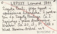 LEPSZY Leonard 1896/7 Żegota Pauli. Jego żywot i spuścizna literacka. Cz. I. Życiorys i prace drukowane.