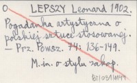 LEPSZY Leonard 1901 Pogadanka o ruchu artystycznym polskim.