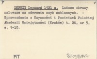 LEPSZY Leonard 1921 a Ludowe obrazy malowane na odwrociu szyb szklannych.
