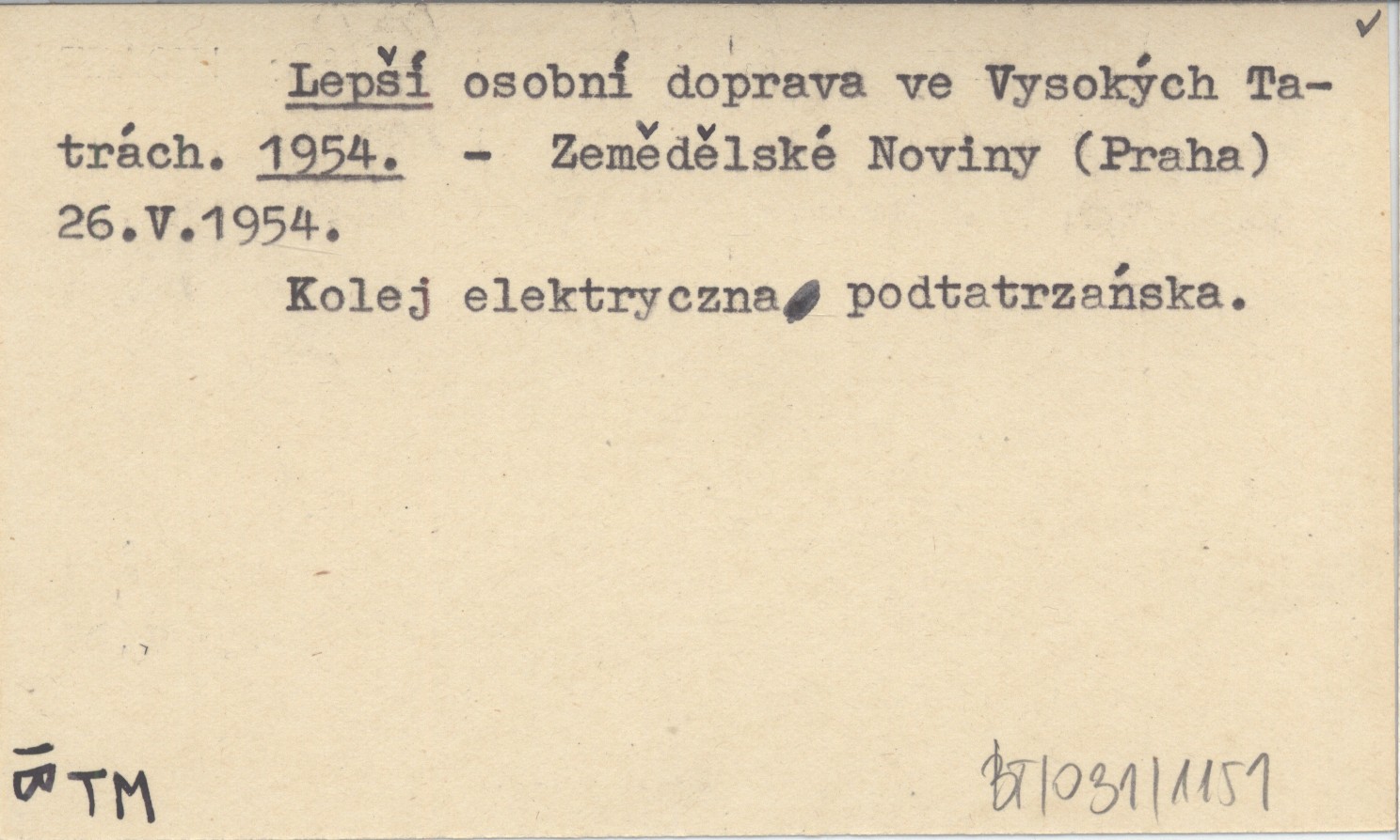 Zemědělské Noviny (Praha) , 26 V 1954. Kolej elektryczna podtatrzańska.