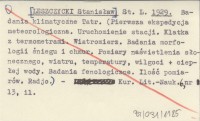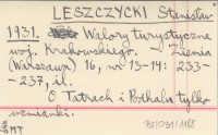 St. L...i. [LESZCZYCKI Stanisław] 1929 b Studja klimatologiczne w Tatrach.