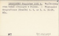 LESZCZYCKI Stanisław 1931 b Współczesny stan badań niwalnych w Polsce.