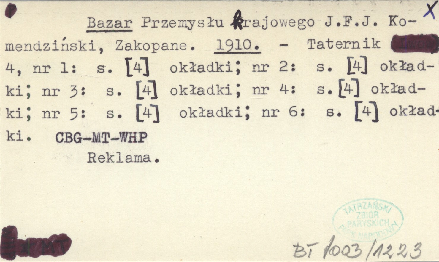 Bazar Przemysłu krajowego J. F. J. Komendziński, Zakopane. 1910