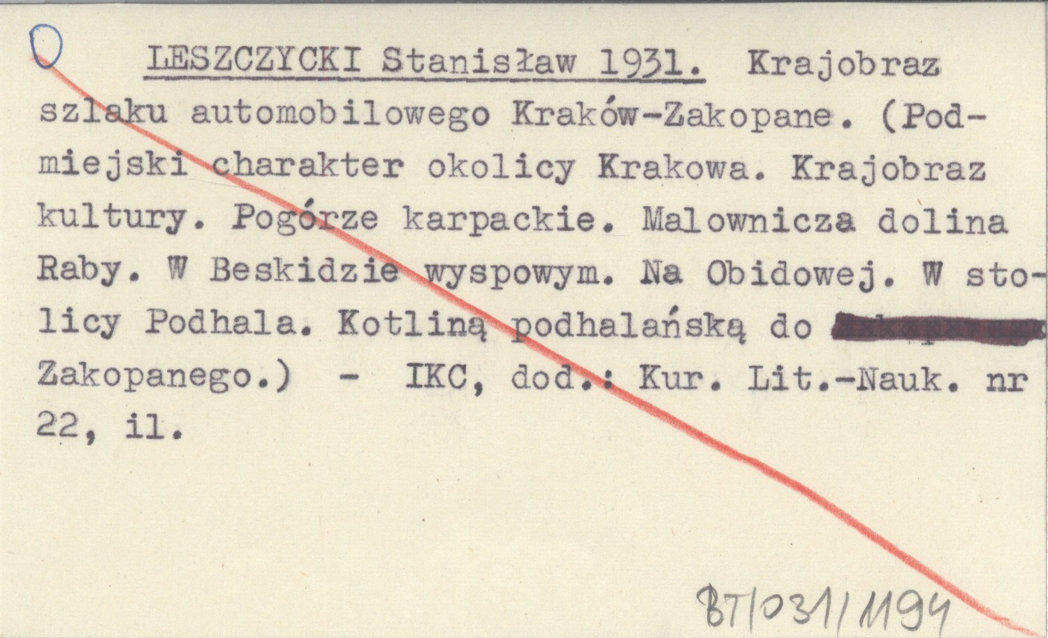 LESZCZYCKI Stanisław 1931 Krajobraz szlaku automobilowego Kraków - Zakopane. (Podmiejski charakter okolicy Krakowa. Krajobraz kultury. Pogórze karpackie. Malownicza dolina Raby. W Beskidzie wyspowym. Na Obidowej. W stolicy Podhala. Kotliną podhalańską do Zakopanego.)