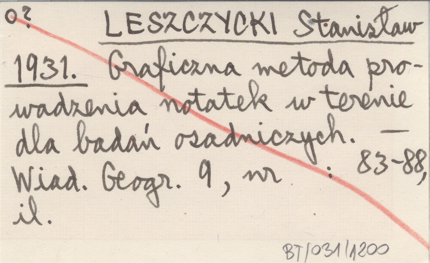 LESZCZYCKI Stanisław 1931 Graficzna metoda prowadzenia notatek w terenie dla badań osadniczych.