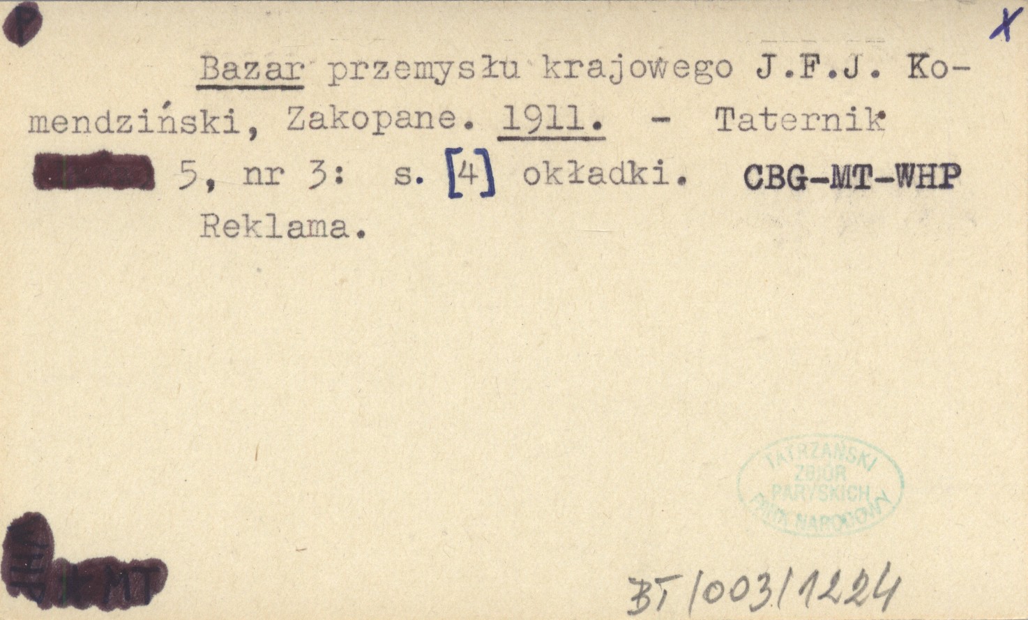 Bazar przemysłu krajowego J. F. J. Komendziński, Zakopane. 1911