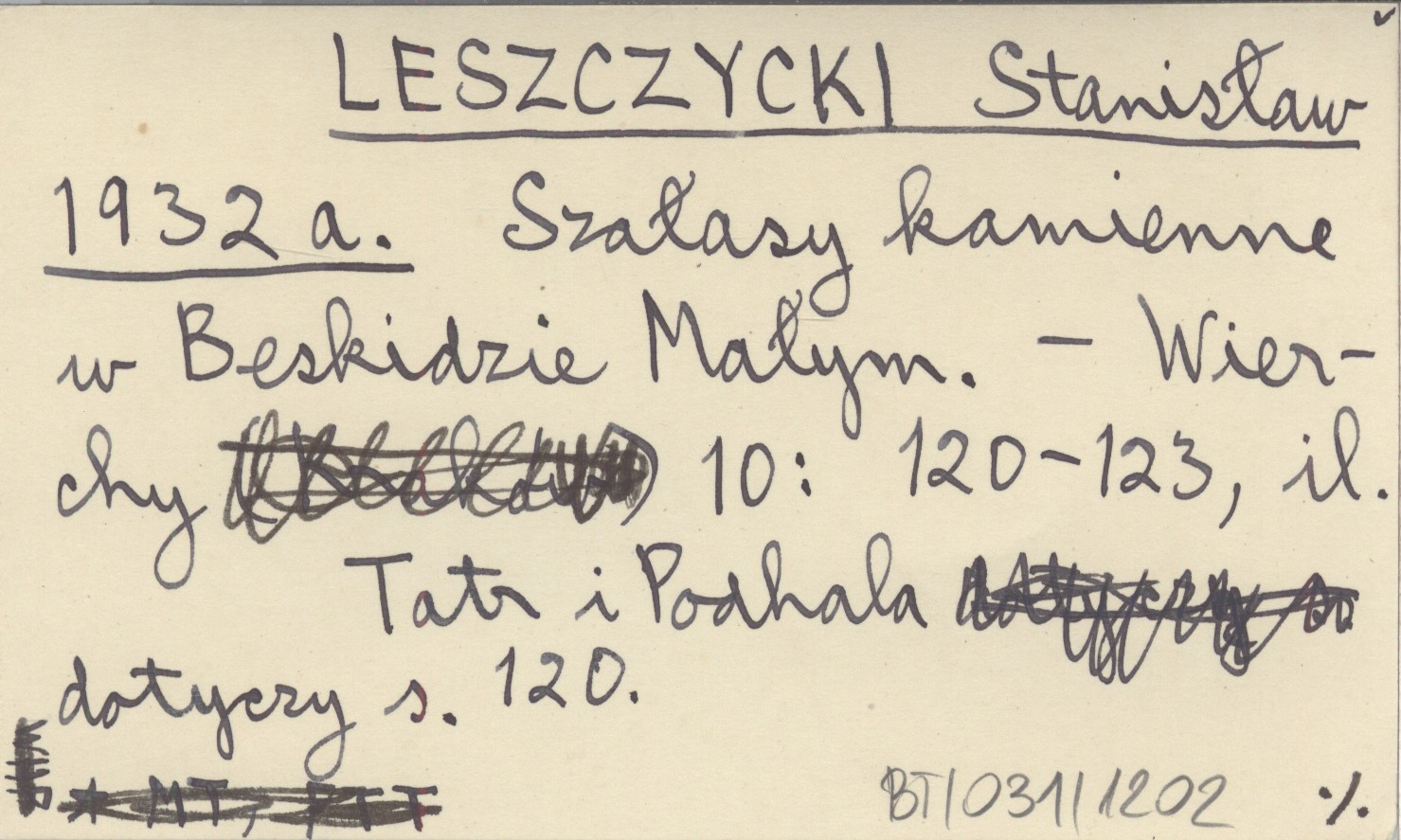 Wierchy, 10: 120-123, il. Tatr i Podhala dotyczy s. 120. REC: ZBOROWSKI J. 1932 h ; LECHOWSKA-BUJAK M. 1961 ;