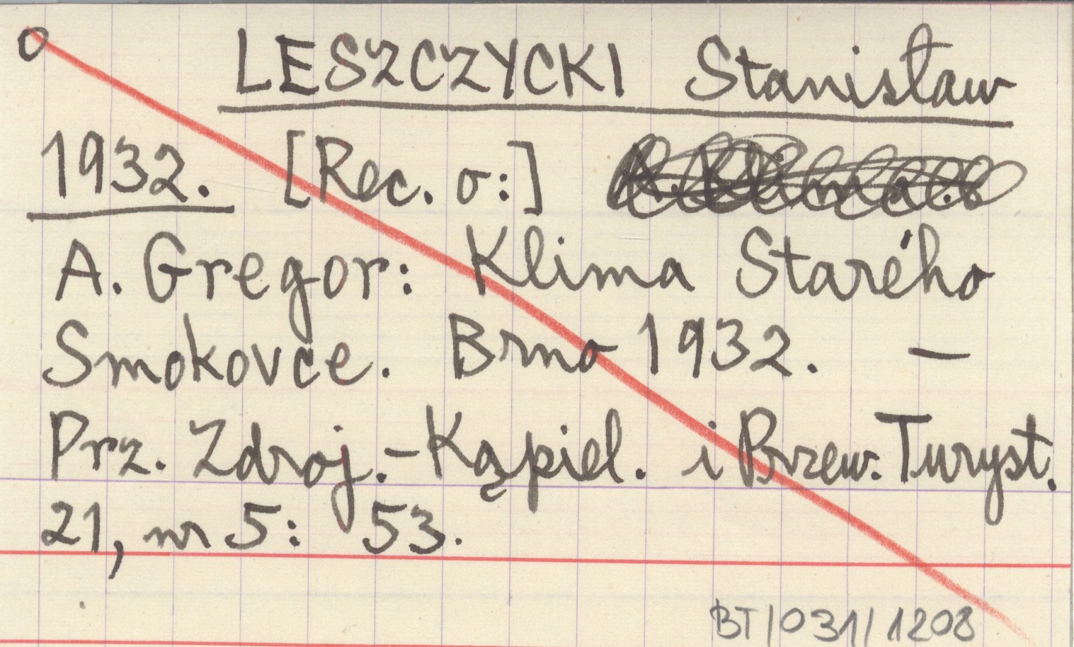 LESZCZYCKI Stanisław 1932 [Rec. o:] A. Gregor: Klima Starého Smokovce. Brno 1932.