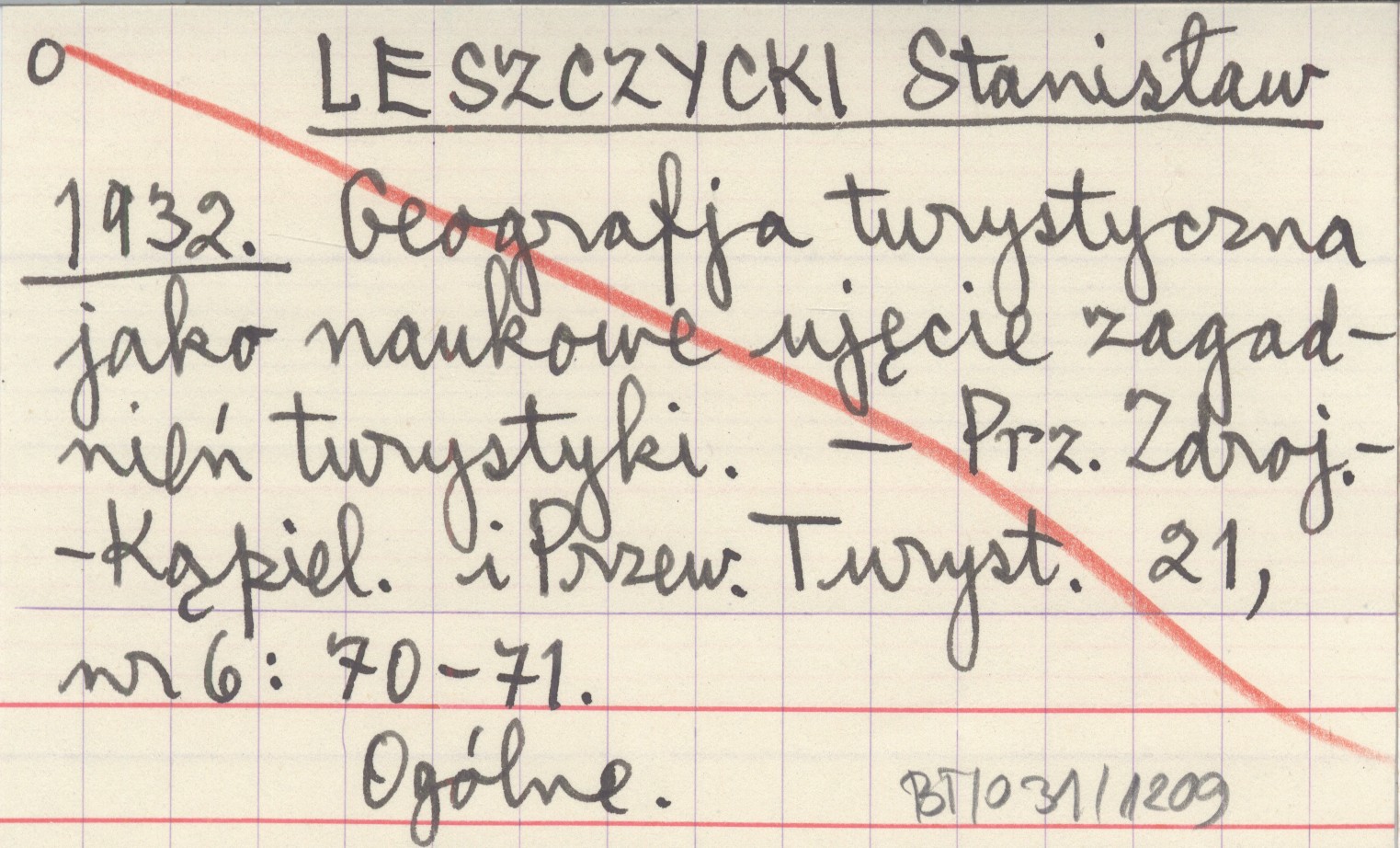 LESZCZYCKI Stanisław 1932 Geografja turystyczna jako naukowe ujęcie zagadnień turystyki.