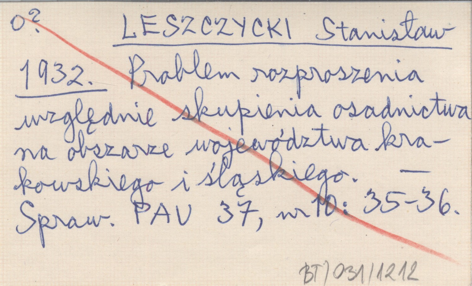 LESZCZYCKI Stanisław 1932 Problem rozproszenia względnie skupienia osadnictwa na obszarze województwa krakowskiego i śląskiego.