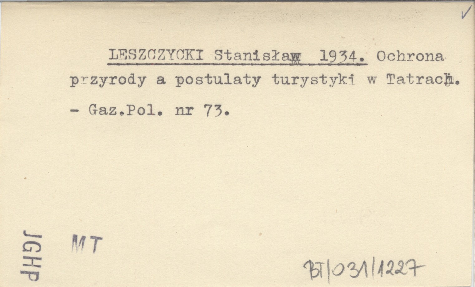 LESZCZYCKI Stanisław 1934 Ochrona przyrody a postulaty turystyki w Tatrach.