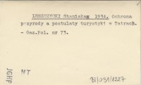 LESZCZYCKI Stanisław 1934 Ochrona przyrody a postulaty turystyki w Tatrach.