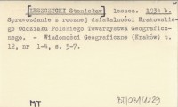 leszcz. [LESZCZYCKI Stanisław] 1934 b Sprawozdanie z rocznej działalności Krakowskiego Oddziału Polskiego Towarzystwa Geograficznego.