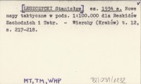 es. [LESZCZYCKI Stanisław] 1934 e Nowe mapy taktyczne w podz. 1:100 000 dla Beskidów Zachodnich i Tatr.