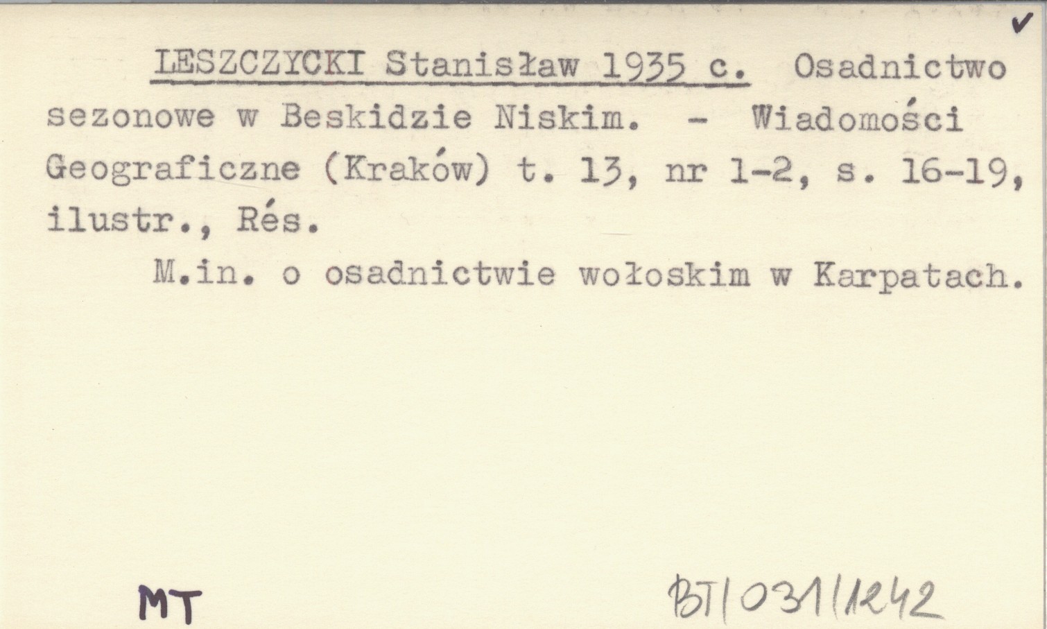 LESZCZYCKI Stanisław 1935 c Osadnictwo sezonowe w Beskidzie Niskim.