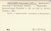 LESZCZYCKI Stanisław 1935 c Osadnictwo sezonowe w Beskidzie Niskim.