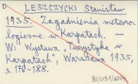 LESZCZYCKI Stanisław 1935 Zagadnienia meteorologiczne w Karpatach.
