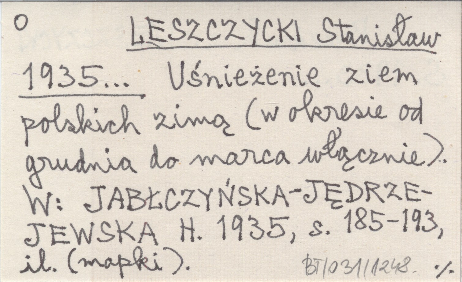 LESZCZYCKI Stanisław 1935... Uśnieżenie ziem polskich zimą (w okresie od grudnia do marca włącznie).