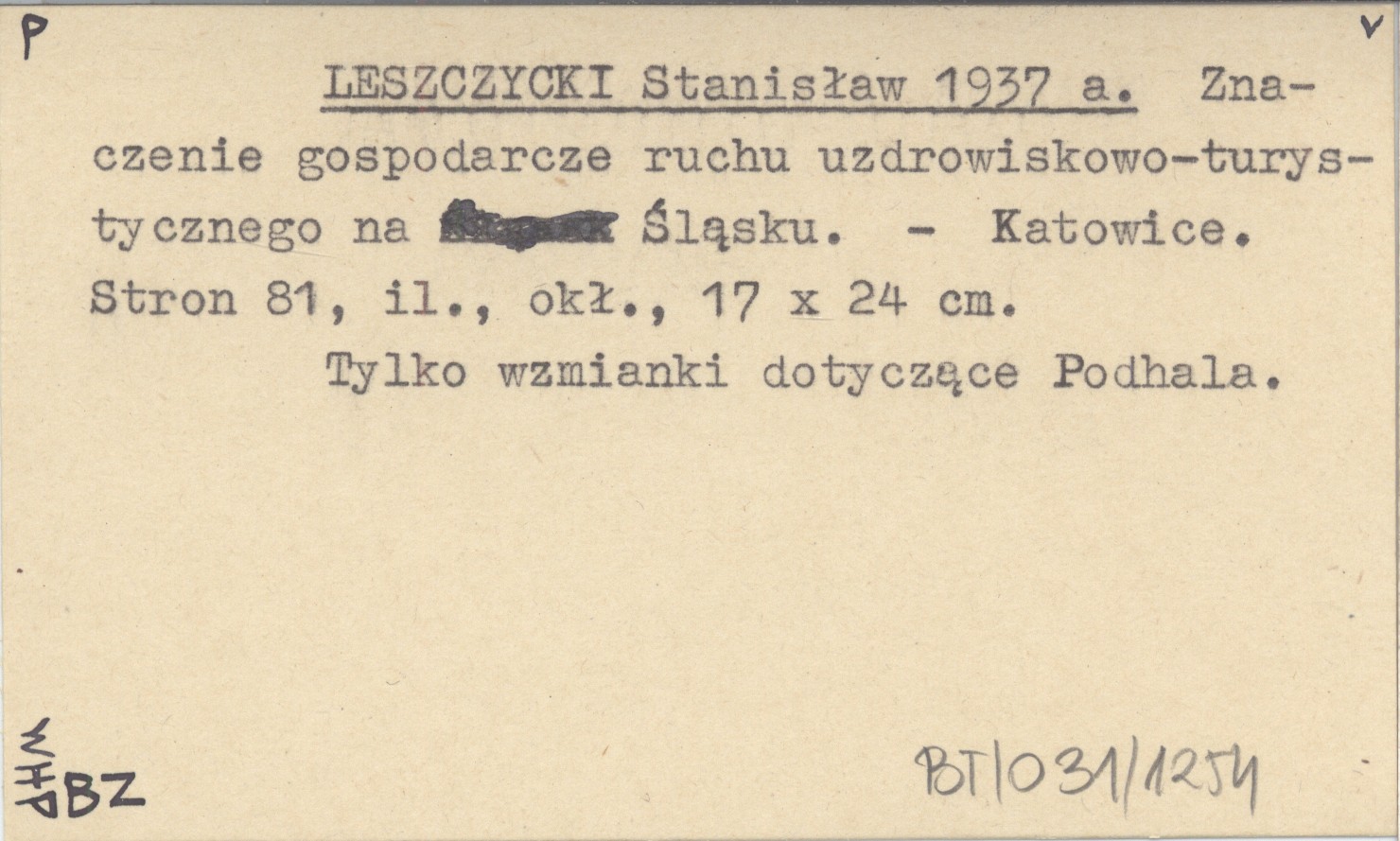 LESZCZYCKI Stanisław 1937 a Znaczenie gospodarcze ruchu uzdrowiskowo-turystycznego na Śląsku.