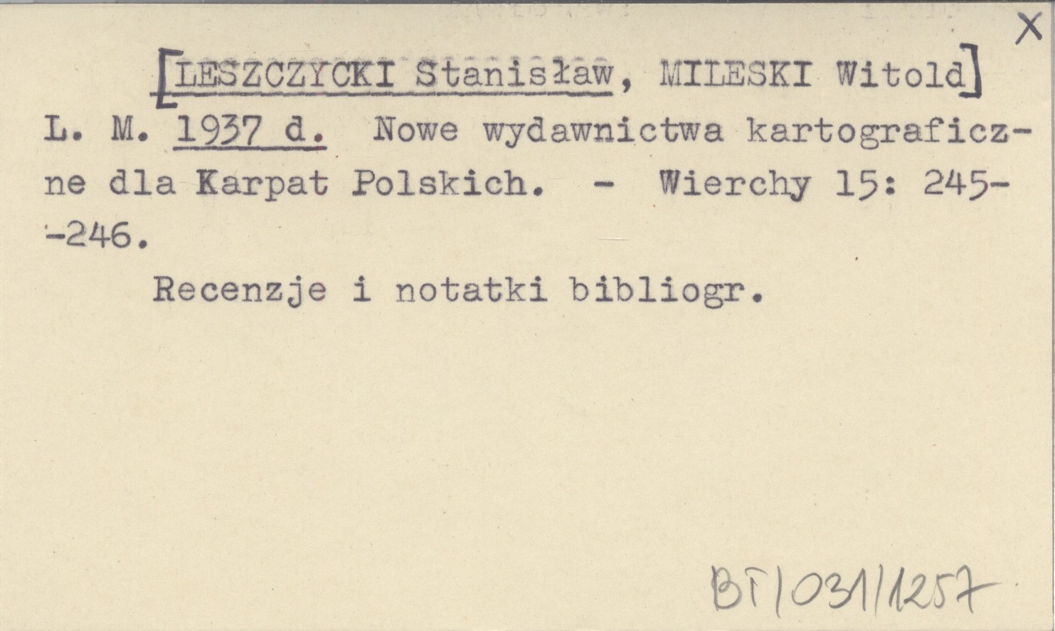 L. M. [LESZCZYCKI Stanisław] MILESKI, Witold. ; 1937 d Nowe wydawnictwa kartograficzne dla Karpat Polskich.