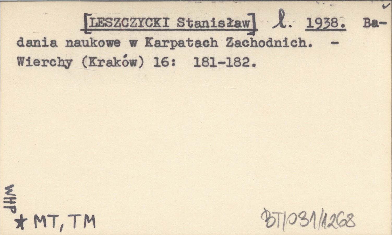 l. [LESZCZYCKI Stanisław] 1938 Badania naukowe w Karpatach Zachodnich.