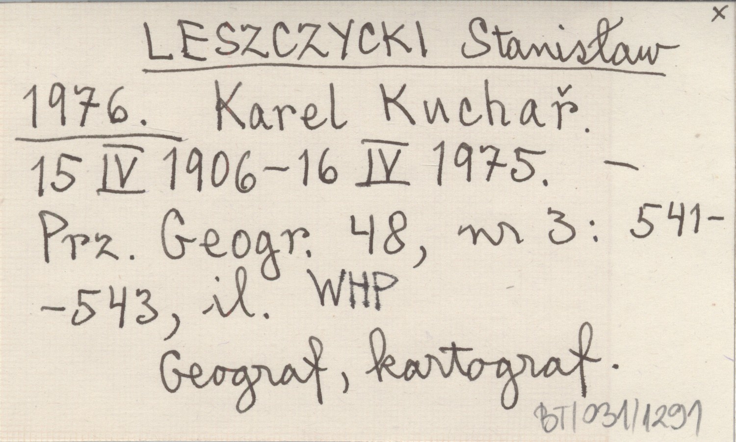LESZCZYCKI Stanisław 1976 Karel Kuchař. 15 IV 1906 - 16 IV 1975.